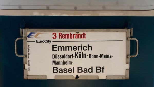 Nächster Zuglaufschild EuroCity 3 Rembrandt Emmerich-Basel Bad Bf