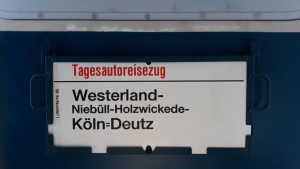 Vorheriger Zuglaufschild Tagesautoreisezug Westerland-Köln=Deutz