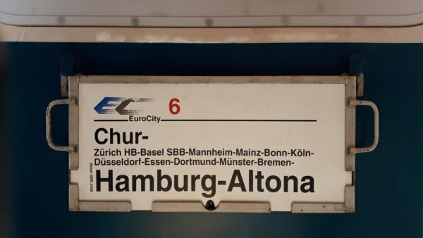 Vorheriger Zuglaufschild EuroCity 6 Chur-Hamburg=Altona