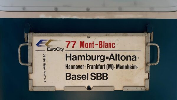 Das Schild zeigt eine damals noch starre Beschriftung, den die Schriftart und Größe verhinderte das man Garmisch-Partenkirchen ausschreiben konnte.Im Winterabschnitt 1987 bis Mittenwald, zusätzlich 19.12.1987-9.1.1988, 30.1.1988-9.4.1988 bis Seefeld in Tirol-für den Wagen,der dieses Schild führte,war die Fahrt in Garmisch-Partenkirchen zu Ende und war nur an Montagen angehängt.