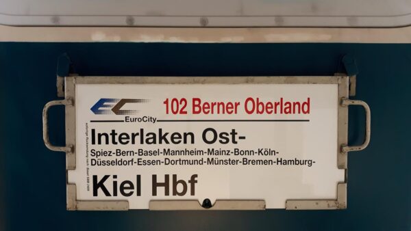 Vorheriger Zuglaufschild EuroCity 102 Berliner Oberland Interlaken Ost-Kiel Hbf