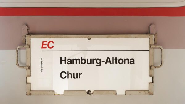EuroCity Chur-Hamburg-Altona Startseite Zuglaufschilder Fernverkehr Euro City EuroCity Chur-Hamburg-Altona Hier ein Ersatzzuglaufschild, schon mit dem moderen EuroCity Logo. Vorheriger Zuglaufschild IC 586 Herrenchiemsee München-Hamburg-Altona Nächster Zuglaufschild IC 584 Linderhof München-Hamburg=Altona