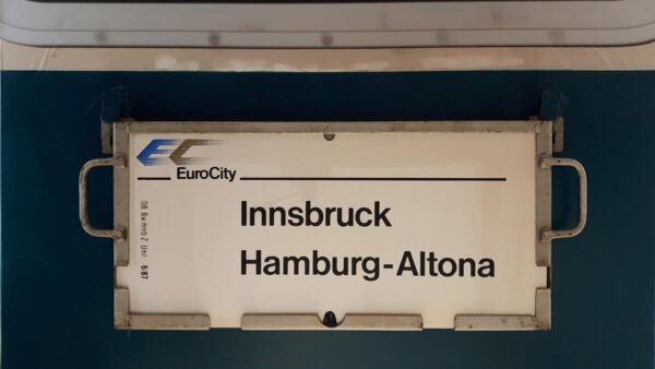 Dieses Ersatzzuglaufschild wurde im Fahrplanjahr 1987/1988 für drei Zugpaare,die alle nach Puttgarden und Kopenhagen fuhren,bereit gehalten.