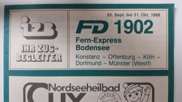 Startseite Zuglaufschilder Besonderheiten Zugbegleiter Faltblatt vorhanden IZB FD 1903 Bodensee Dortmund-Konstanz