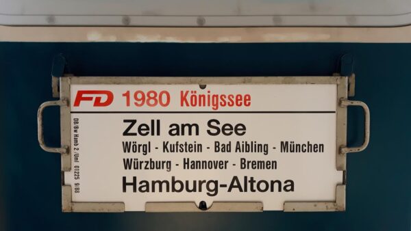 FD 1913 Allgäu Dortmund-Schruns Startseite Zuglaufschilder Fernverkehr FD-Züge Fern-Express FD 1913 Allgäu Dortmund-Schruns 1989 fuhr nur der Wagen 258 als Kurswagen von Dortmund nach Schruns. Vorheriger Zuglaufschild FD 1980 Königssee Zell am See-Hamburg-Altona Nächster Zuglaufschild FD 1912 Allgäu Schruns-Dortmund