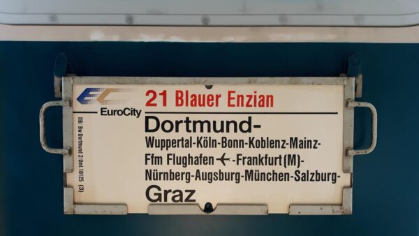 Vorheriger Zuglaufschild EuroCity 21 Blauer Enzian Dortmund-Graz