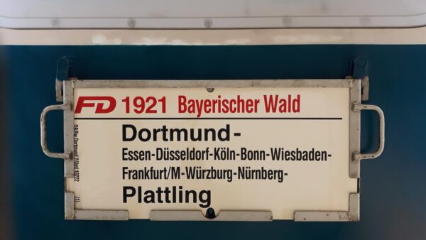 FD 1920 Bayerischer Wald Plattling-Dortmund Startseite Zuglaufschilder Fernverkehr FD-Züge Fern-Express FD 1920 Bayerischer Wald Plattling-Dortmund Das Betriebswerk Dortmund 2 stellte diesen Zug. Vorheriger Zuglaufschild Gesellschaftssonderzug Troisdorf-Boppard Nächster Zuglaufschild FD 1921 Bayerischer Wald Dortmund-Plattling