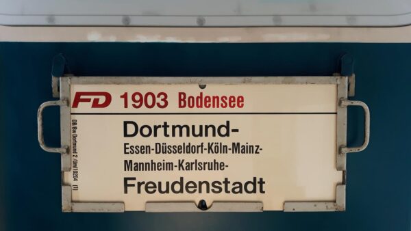 Der Wagen der dieses Zuglaufschild führte wurde erst ab Hannover als Verstärkung an den Haupt-FD-Zug aus Kolblenz angehängt.