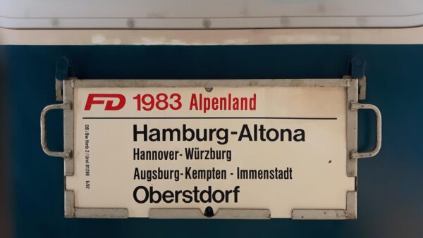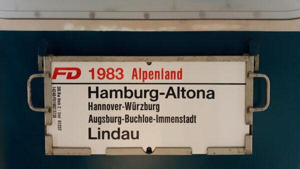 Startseite Zuglaufschilder Fernverkehr FD-Züge Fern-Express FD 1983 Alpenland Hamburg=Altona-Füssen