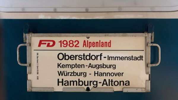 Vorheriger Zuglaufschild FD 1982 Alpenland Oberstdorf-Hamburg=Altona