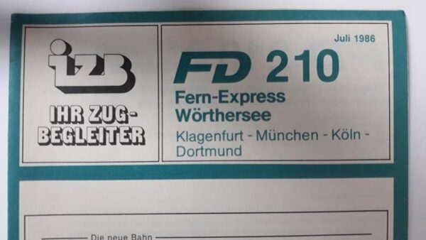 IZB FD 211 Wörthersee Dortmund-Klagenfurt Startseite Zuglaufschilder Besonderheiten Zugbegleiter Faltblatt vorhanden IZB FD 211 Wörthersee Dortmund-Klagenfurt Vorheriger Zuglaufschild IZB IC 682 Ernst Barlach München-Hamburg Nächster Zuglaufschild Moliére Aachen-Kopenhagen