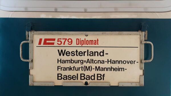 Der Wagen der 1985 dieses Zuglaufschild führte,wurde erst beim Richtungswechsel an den aus Wien kommenden FD-Zug angehängt.Standzeit in Frankfurt Hbf von 18.00 Uhr bis 18.08 Uhr.