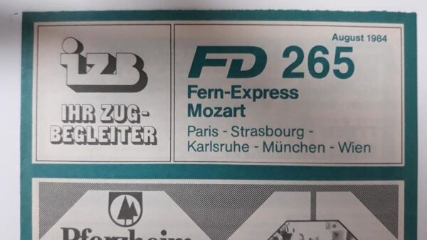 IZB FD 702 Bodensee Konstanz-Dortmund Startseite Zuglaufschilder Besonderheiten Zugbegleiter Faltblatt vorhanden IZB FD 702 Bodensee Konstanz-Dortmund Vorheriger Zuglaufschild IZB FD 703 Bodensee Dortmund-Konstanz Nächster Zuglaufschild IZB FD 265 Mozart Paris-Wien