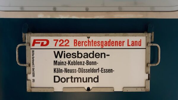 Dieses Zuglaufschild zeigt einen Verstärkungswagen,der in München beimRichtungswechsel in dem Kopfbahnhof angehängt wurde.