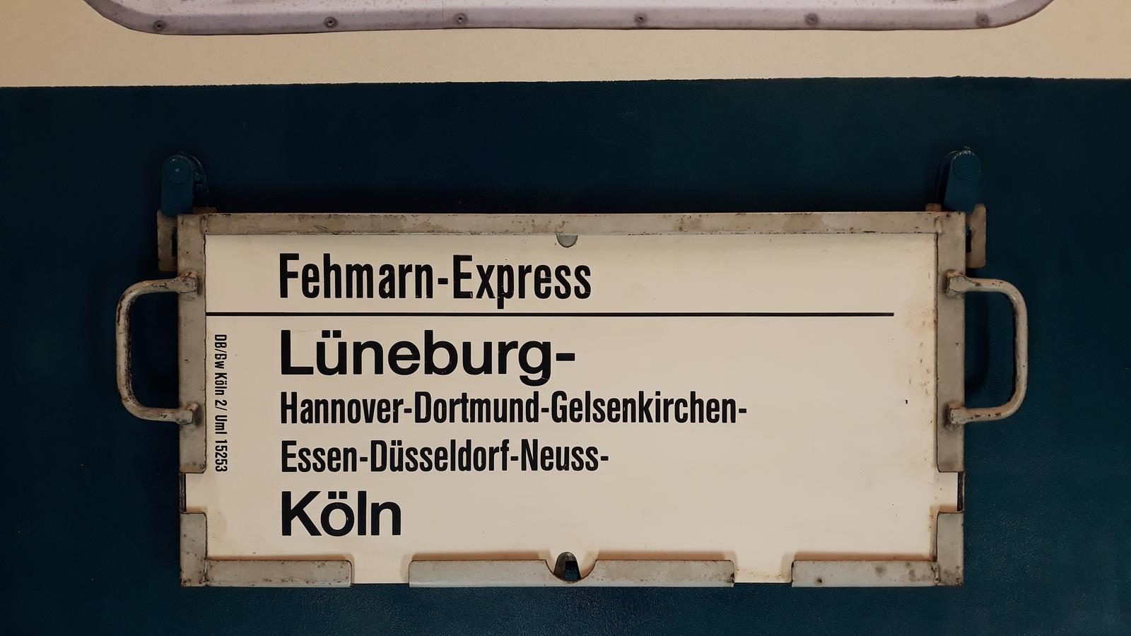 Im Fahrplanjahr 1983/1984 wurde der Wagen, der dieses Zuglaufschild führte,erst um 13.38 Uhr in Lüneburg,an den aus Puttgarden kommenden D-Zug 1840, angehängt.
