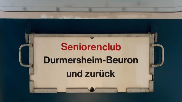 Vorheriger Zuglaufschild Seniorenclub Durmersheim-Beuron und zurück