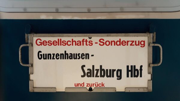 Nächster Zuglaufschild Gesellschafts-Sonderzug Gunzenhausen-Salzburg und zurück