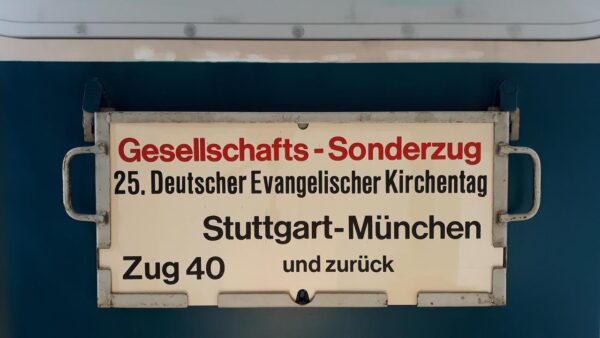 Gesellschafts-Sonderzug Freiburg Hbf-Altötting und zurück Startseite Zuglaufschilder Sonderzüge Sonderzüge Gesellschafts-Sonderzug Freiburg Hbf-Altötting und zurück Ein Zuglaufschild für eine 452 km lange Strecke. Vorheriger Zuglaufschild Gesellschafts-Sonderzug 25.Deutscher Evangelischer Kirchentag Stuttgart-München und zurück Nächster Zuglaufschild Gesellschafts-Sonderzug Mannheim-Ötztal/Sölden und zurück