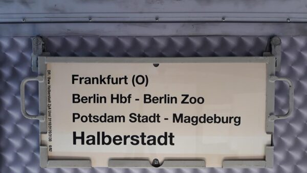 Halberstadt-Frankfurt(O) Startseite Zuglaufschilder Nahverkehr Nahverkehrszüge Halberstadt-Frankfurt(O) Vorheriger Zuglaufschild Frankfurt(O)-Halberstadt Nächster Zuglaufschild Stralsund-Erfurt