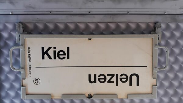Das Zuglaufschild ist ein Universalschild für viele Strecken und ohne Beschreibung von Unterwegsbahnhöfen oder Startbahnhöfen.