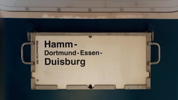 Ein Zuglaufschild für eine kurze Strecke.Da auf der Rückseite ein InterCity ab Dortmund Hbf aufgedruckt ist,könnte es bei diesem Eilzug nur um einen Zubringerzug handeln,der in Hamm geparkte Wagen wieder nach Dortmund fuhr.