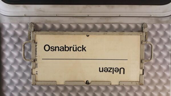 Hannover Startseite Zuglaufschilder Nahverkehr Nahverkehrszüge Hannover Das Betriebswerk Osnabrück stellte 1987 diesen Zug. Vorheriger Zuglaufschild Hannover Nächster Zuglaufschild Osnabrück