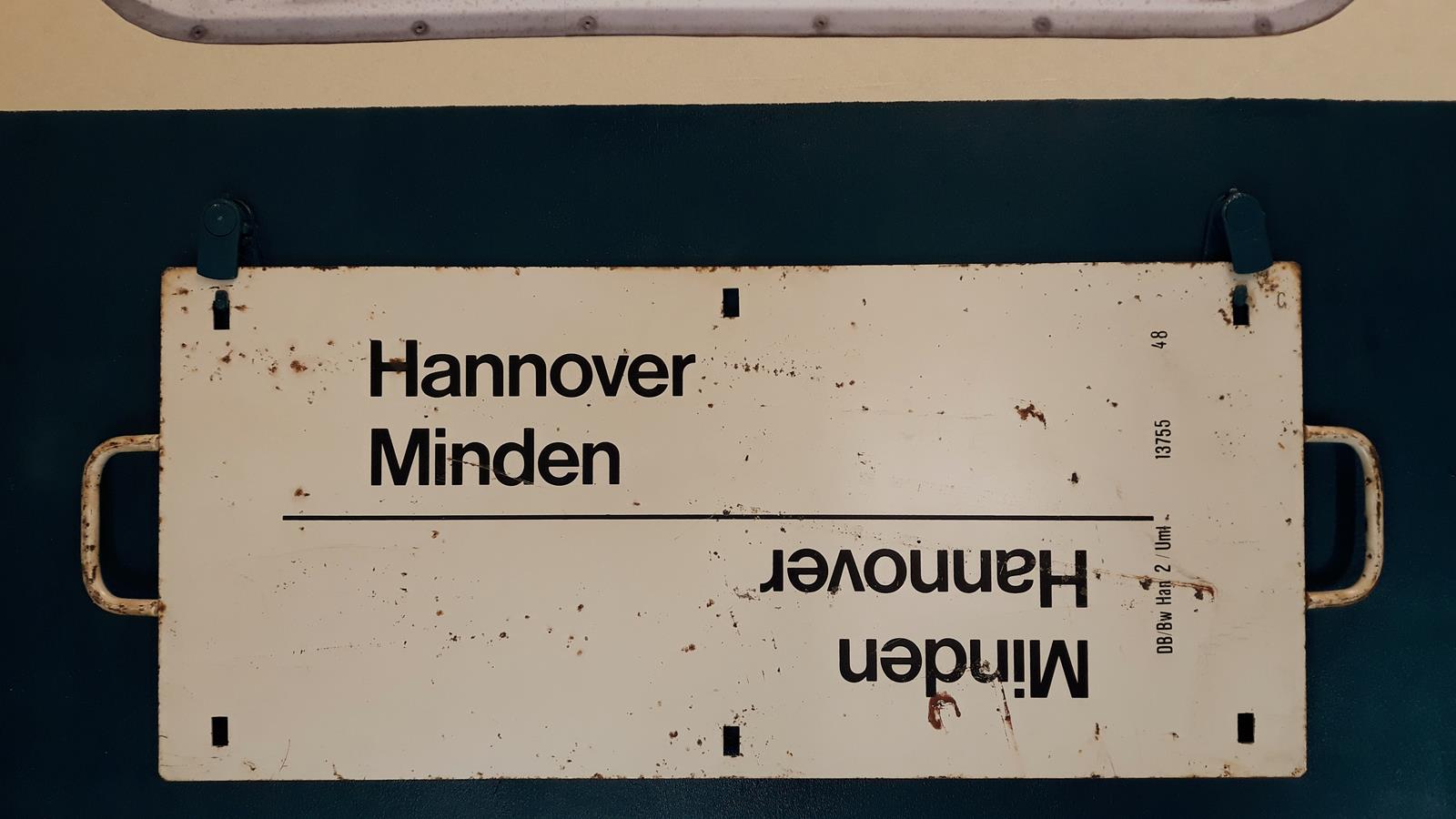 Startseite Zuglaufschilder Nahverkehr Vier Ziele auf einem Schild Hannover-Minden