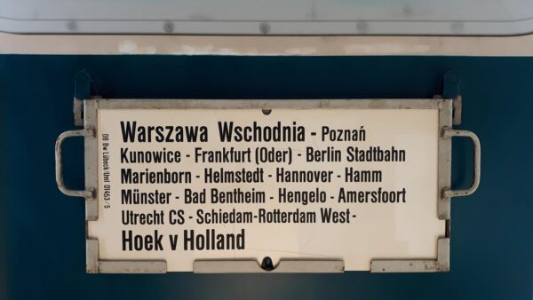 Hoek van Holland-Warschau Startseite Zuglaufschilder Fernverkehr D-Züge lange Strecke Hoek van Holland-Warschau 1988 stellte das Betriebwerk Lübeck diesen Zug,der noch durch die damalige DDR fuhr. Vorheriger Zuglaufschild Kassel-Hannover Nächster Zuglaufschild Finnentrop