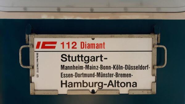 IC 113 Diamant Hamburg-Altona-Stuttgart Startseite Zuglaufschilder Fernverkehr InterCity IC 113 Diamant Hamburg-Altona-Stuttgart 1989 stellte das Betriebswerk Hamburg 2 diesen Zug. Vorheriger Zuglaufschild IC 112 Diamant Stuttgart-Hamburg-Altona Nächster Zuglaufschild IC 541 Roland Oldenburg-Berlin Hbf