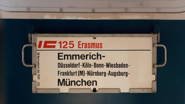 Das Betriebswerk Frankfurt 4 stellte diesen Zug.Der Wagen, der dieses Zuglaufschild führte, war die Fahrt schon beim letzten Halt in Emmerich zu Ende,der verbleibende Zugteil fuhr weiter nach Amsterdam CS.