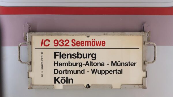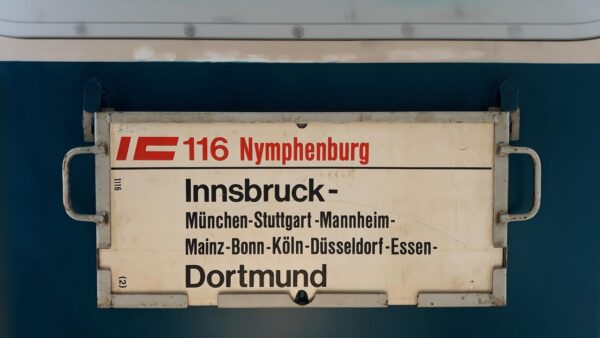 Ein Zuglaufschild aus dem Jahr 1986,1987 wurde aus dem IC ein EuroCity 25 Erasmus von Amsterdam nach Innsbruck… Die Reisezeit betrug damals 11 Stunden und 15 Minuten.