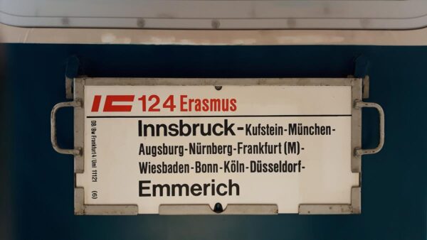 1984 wurde der Wagen,der dieses Zuglaufschild führte,erst in Emmerich an den aus Amsterdam CS kommenden Zug angehängt.