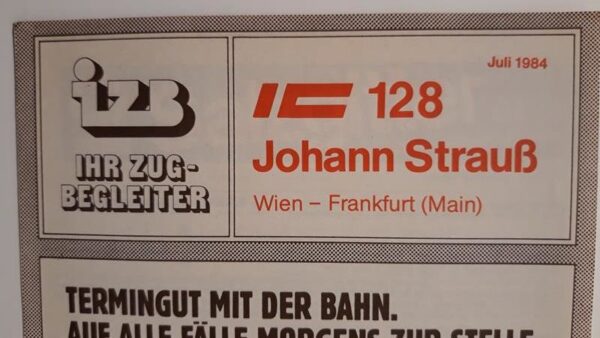 Vorheriger Zuglaufschild IZB IC 128 Johann Strauß Wien-Frankfurt(M)