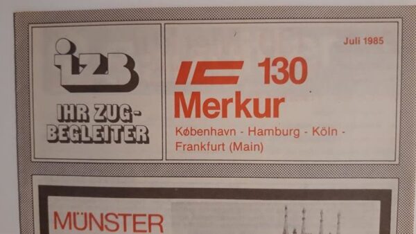 Vorheriger Zuglaufschild IZB IC 130 Merkur Kopenhagen-Frankfurt(M)