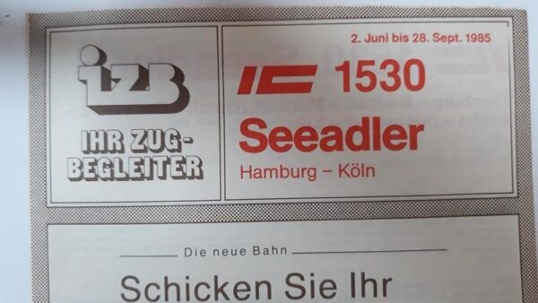 IZB IC 1532 Kormoran Kiel-Köln Startseite Zuglaufschilder Besonderheiten Zugbegleiter Faltblatt vorhanden IZB IC 1532 Kormoran Kiel-Köln Vorheriger Zuglaufschild IZB IC 1534 Seestern Hamburg-Köln Nächster Zuglaufschild IZB IC 1530 Seeadler Hamburg-Köln