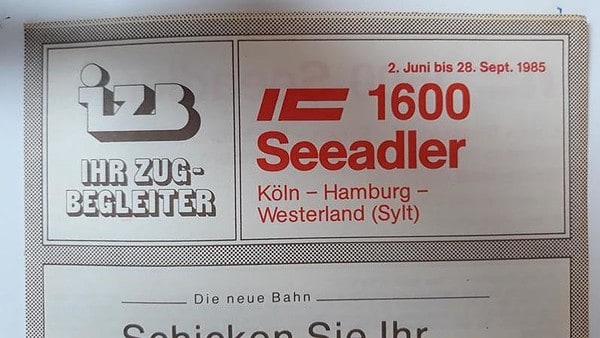 Startseite Zuglaufschilder Besonderheiten Zugbegleiter Faltblatt vorhanden IZB IC 1607 Seeschwabe Hamburg-Köln