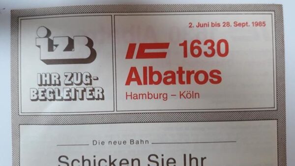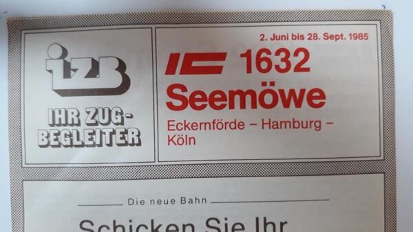 IZB IC 1630 Seeadler Flensburg-Köln Startseite Zuglaufschilder Besonderheiten Zugbegleiter Faltblatt vorhanden IZB IC 1630 Seeadler Flensburg-Köln Vorheriger Zuglaufschild IZB IC 1632 Seemöwe Eckernförde-Köln Nächster Zuglaufschild IZB IC 1630 Albatros Hamburg-Köln