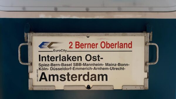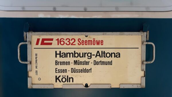 Das Schild ist von 6/87 und hing außen am Wagen von Eckernförde nach Köln.