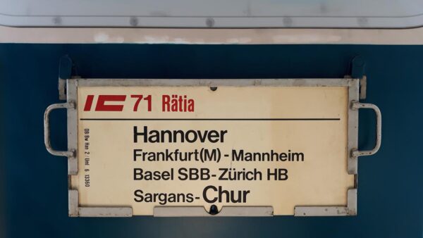 Im Fahrplanjahr 1982/1983 fuhr dieser Zug nur am Sonntag erst ab Frankfurt(M),daher druckte man dieses Schild,das über 35 Jahre alt ist.