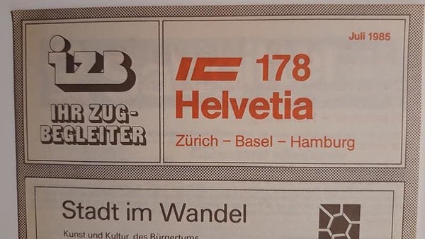 IZB IC 179 Helvetia Hamburg-Zürich Startseite Zuglaufschilder Besonderheiten Zugbegleiter Faltblatt vorhanden IZB IC 179 Helvetia Hamburg-Zürich Vorheriger Zuglaufschild IZB IC 180 Karwendel Innsbruck-Hamburg Nächster Zuglaufschild IZB IC 178 Helvetia Zürich-Hamburg