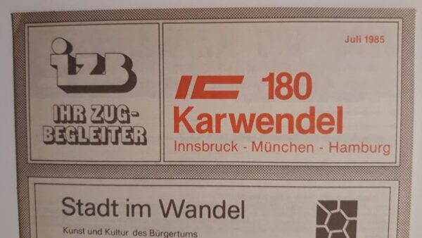 IZB IC 181 Karwendel Bremen-Seefeld in Tirol Startseite Zuglaufschilder Besonderheiten Zugbegleiter Faltblatt vorhanden IZB IC 181 Karwendel Bremen-Seefeld in Tirol Vorheriger Zuglaufschild IZB D 815 Köln-München Nächster Zuglaufschild IZB IC 576 Kaiserstuhl Basel-Bremen