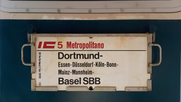 IC 5 Metropoliano Basel SBB-Chiasso Startseite Zuglaufschilder Fernverkehr InterCity IC 5 Metropoliano Basel SBB-Chiasso Dieser Wagen wurde erst in Basel SBB an den Hauptzug nach Mailand angehängt. Vorheriger Zuglaufschild IC 585 Ernst Barlach Hamburg=Altona-München Nächster Zuglaufschild IC 5 Metropoliano Dortmund-Basel SBB