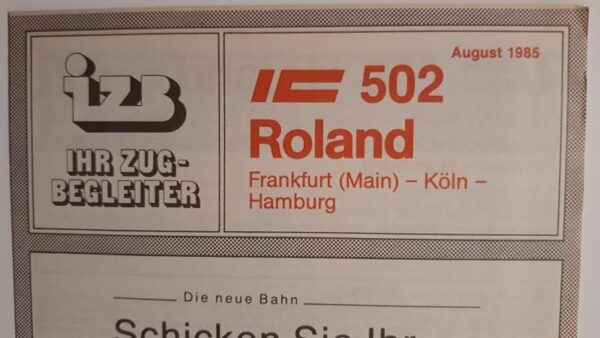 Vorheriger Zuglaufschild IZB IC 502 Roland Frankfurt(M)-Hamburg