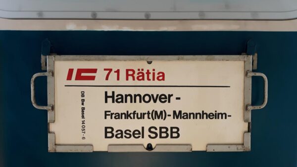 IC 501 Rheinblitz Hannover-Basel Bad Bf Startseite Zuglaufschilder Fernverkehr InterCity IC 501 Rheinblitz Hannover-Basel Bad Bf Gestellt wurde dieser Zug vom Betriebswerk Basel. Vorheriger Zuglaufschild IC 526 Walhalla Regensburg-Hannover Nächster Zuglaufschild IC 71 Rätia Hannover-Basel SBB