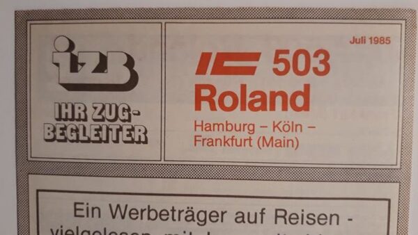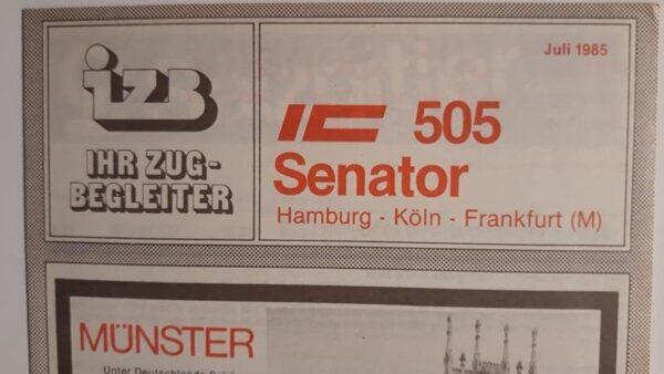 Startseite Zuglaufschilder Besonderheiten Zugbegleiter Faltblatt vorhanden IZB IC 504 Senator Frankfurt(M)-Hamburg