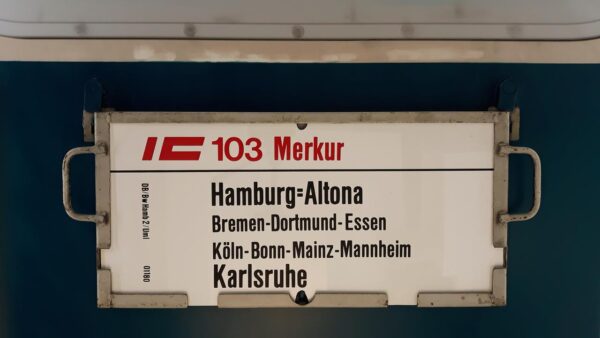 Vorheriger Zuglaufschild IC 103 Merkur Hamburg-Altona-Karlsruhe