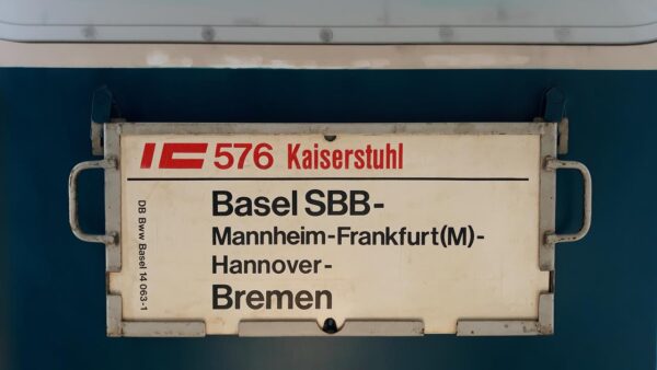 Vorheriger Zuglaufschild IC 576 Kaiserstuhl Basel SBB-Bremen