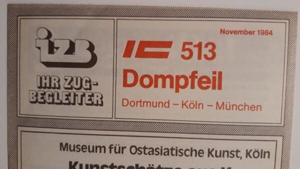 Startseite Zuglaufschilder Besonderheiten Zugbegleiter Faltblatt vorhanden IZB IC 512 Glückauf München-Dortmund