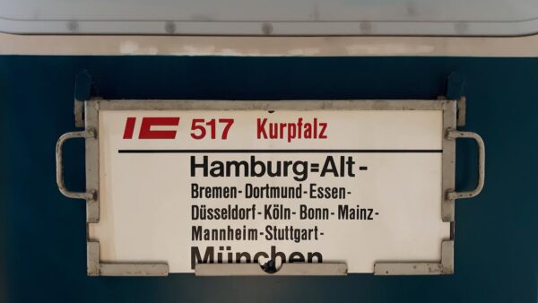Nächster Zuglaufschild IC 517 Kurpfalz Hamburg=Alt-München