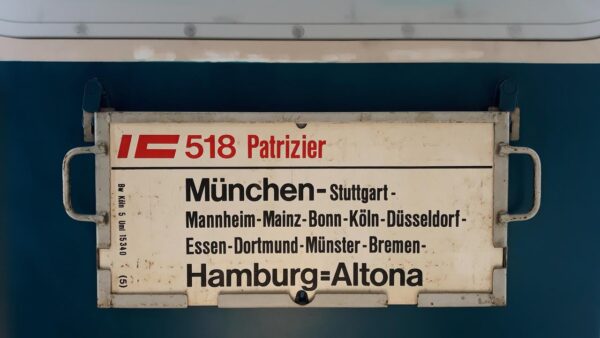 Vorheriger Zuglaufschild IC 518 Patrizier München-Hamburg=Altona